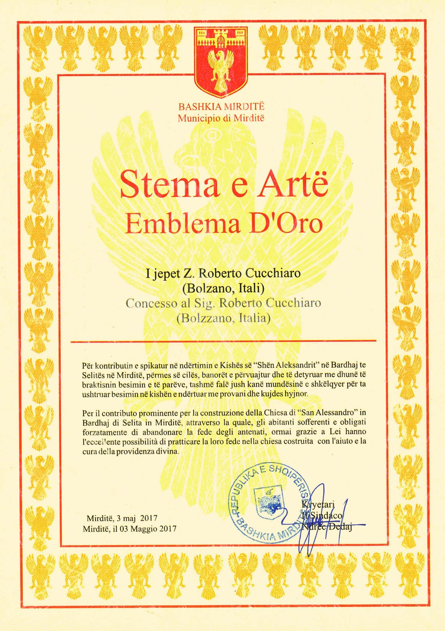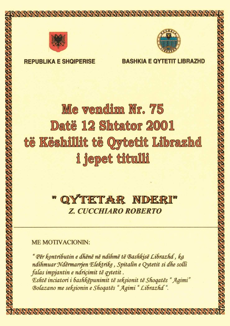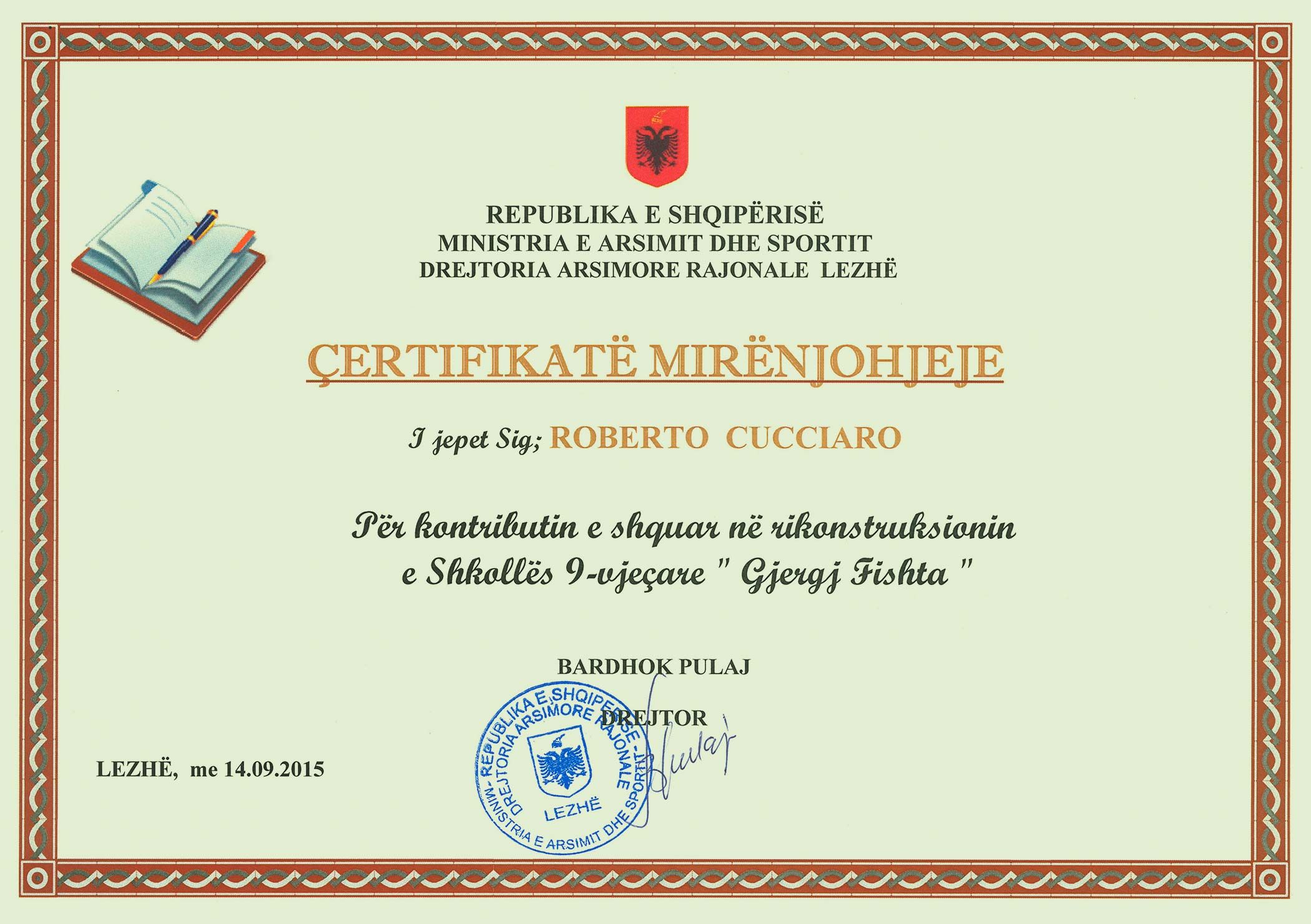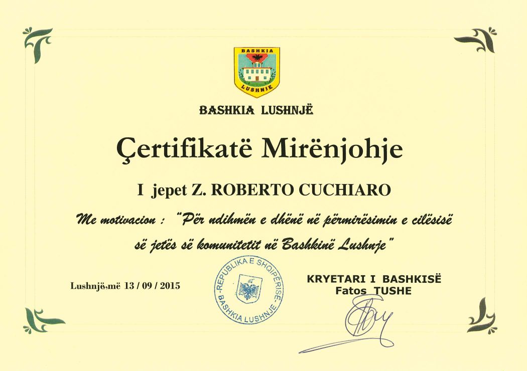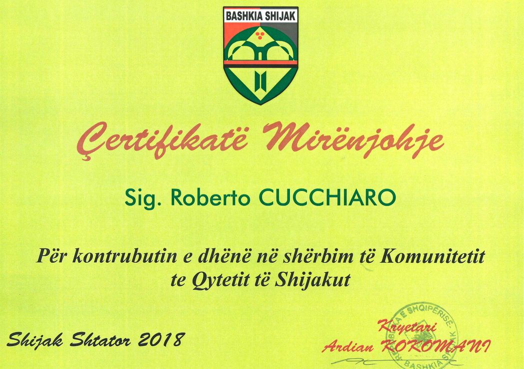Ha ricevuto inoltre un importante riconoscimento dal Ministero dell'Istruzione e dello Sport della Repubblica d'Albania